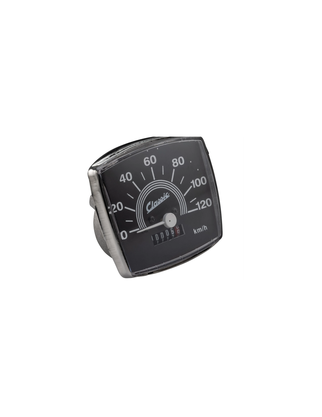 CUENTAKILOMETROS CLASSIC SIP VESPA 50CC(69/83) 120 KMS/H ESFERA NEGRO CIFRAS BLANCO ANILLO TACOMETRO 2,7MM